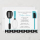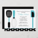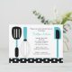 Comience su acontecimiento de la derecha con nuestra invitación nupcial de la ducha de la cocina retra de la diversión que ofrece azules turquesas brillantes y una espátula negra y bata apenas el personalizar nuestra invitación con su información del boda y usted es todo fija para ir. Estudio del cacao del ©