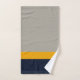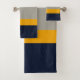 Azul oscuro, amarillo, rayas grises texturadas con trazos cruzados, imitando burlap