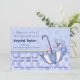 Dulce invitación a ducharse con un adorable oso de peluche azul montado en un paraguas, grandes puntos y otros toques especiales. Personalizar con Su información.