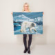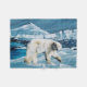 Un oso polar blanco en la nieve del invierno ártico con un iceberg detrás