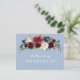 Este diseño presenta flores de borgoña, marina y rubor en un polvoriento fondo azul. azul polvoriento burdeos, serás mi tarjeta de dama de honor