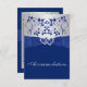 Esta elegante y romántica tarjeta de inserción para boda con patrón floral en azul real y gris plateado tiene una cinta y lazo azules IMPRESOS con un par de corazones unidos con joyas de diamante IMPRESAS y brillo FAUX azul que coincide con la invitación de boda que se muestra a continuación. agregue sus datos de alojamiento, direcciones, pozo de deseos, registro de regalos u otra información a la tarjeta. La elección del papel es personalizable. Si necesita otros artículos coincidentes, por favor envíe un correo electrónico a niteowlstudio@gmail.com.