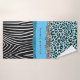 Estas toallas personalizadas son geniales para asegurarse de que nada se pierda en la lavadora de la universidad porque están personalizadas con tu nombre. Genial para niñas que aman el azul o niños que quieren un poco de brillo. Con un diseño negro turquesa con brillo azul turquesa y estampado de leopardo azul.