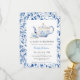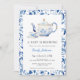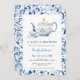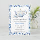 Celebra con un estilo atemporal con esta invitación a la tela azul "Un bebé se está preparando". Con una tetera y una taza clásicas con intrincados bordes florales de acuarela azul, este diseño cuenta la historia de la elegancia y la tradición, lo que lo hace perfecto para una sofisticada ducha para bebés.