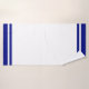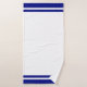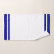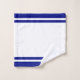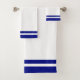 Elegante juego de toallas de baño azul marino a rayas y blanco.