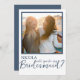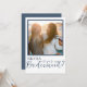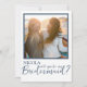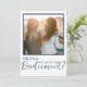Esta es una plantilla moderna y elegante de la tarjeta de presentación "Will You Be My Bridesmaid". El diseño presenta una sola foto con un contorno azul y una tipografía. Hay espacio en la parte posterior de esta tarjeta para un mensaje especial, o puede borrar y agregar una nota escrita a mano.