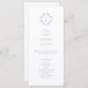 Moda con la elegancia juvenil. Esta polvorienta tarjeta de programa de bodas azul y blanco transmite un tono fresco, moderno y juvenil. La parte delantera de la tarjeta incluye un conjunto contemporáneo de fuentes en un monograma polvoriento azul y elegante de pareja floral, con un fondo blanco y nítido. Incluidos un mensaje de agradecimiento, orden de ceremonia y tu propia lista de fiestas de boda al fondo.