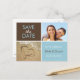 Blue y Brown Guardar las postales de la foto con la opción de añadir 1 o 2 fotos. Dejar la foto inferior del corazón en la arena para un boda de temática playera. Diseño de bloques de color marrón y azul moda con una plantilla fácil de usar - sólo hay que añadir los nombres de la novia y el novio, junto con la fecha boda en el espacio proporcionado.