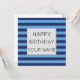 Un patrón de rayas de azul claro y azul claro fresco y una plantilla de texto de feliz cumpleaños. Haga clic en personalizar para agregar su nombre.