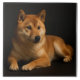 This ceramic tile features a calm Shiba Inu portrait on a deep black background.