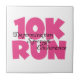 Texto rosa brillante que lee 10K RUN y texto negro que dice Determination Strength Endurance en correr camisetas, caramelos, botones, bolsos, tazas, pegatinas y otros productos para cualquiera que esté entrenando o que ya haya manejado un 10K!