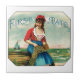 Una rara etiqueta de cigarro estadounidense del siglo XIX para los Cigarros de la Primera Matriz. La etiqueta que muestra a una mujer disfrutando de un cigarro mientras repara una red de pesca.