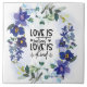 Cita inspiradora cristiana Escritura cerámica representa un diseño de acuarela floral elegante con orquídeas simples y blancas y vegetación. Presenta la cita inspiradora Biblia Verse 1 Corinthians 13:4, "El amor es paciente, el amor es amable".