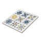 Decorative Tile with Mediterranean Style: Nine Floral and Geometric Patterns in Navy Blue, Yellow, and White