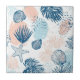 Abstract nautical pattern ceramic tile with starfish, seashell, and palm leaves in distressed blue and peach tones on a clean white background. Modern coastal summer aesthetic with a textured vintage feel. Ideal for beach lovers, ocean enthusiasts, coastal lifestyle fans, and summer trend seekers.