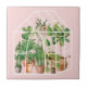 Azulejo Acuarela Cute planta tropical de la casa en rosa