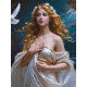 "Afrodita: Diosa del Amor y la Luz". Este cuadro de estilo clásico delicado da vida a Afrodita con un toque de elegancia moderna. Su cabello dorado y su serena expresión reflejan su condición de hermosa diosa con una paloma como símbolo de amor y paz, y el mar recuerda sus orígenes.