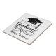 Personalizó este mosaico temático de graduación con el nombre y el año del graduado. El diseño presenta un tapón de graduación en negro con texto negro y un florecimiento decorativo.
