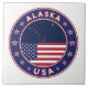 Insignia de Alaska con bandera de Alaska y bandera de los colores de Estados Unidos, forma redondeada. Emblema de Alaska. Sello de Alaska. Colección de Estados Unidos.