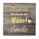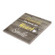 Fondo de efecto rústico personalizado de madera oscura, montaña de cerámica. Idea de regalo para la persona que amas. Añade un nombre y reemplaza la cita: "Haces sonreír mi corazón", si lo prefieres. Marrón y amarillo. Nota: para ser utilizado como una montaña rusa, necesitará fijar almohadillas/pies de fieltro para proteger la superficie de la mesa