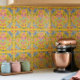 Con un diseño floral soleado y brillante, estos azulejos son una adición única a salpicaduras de cocina o baño.