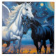 White Pegasus acaricia a su amor el caballo negro en un campo de flores bajo un cielo estrellado AI ART de Minx267