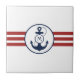 Rayas y ancla y monograma náuticos rojos y blancos de los azules marinos.