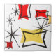 Vuelva a los años 50 con este diseño rojo, negro, y suave del amarillo del oro. Las estrellas y otras formas dan ese humor retro.