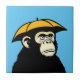Imagen divertida de un chimpancé usando un gorra de paraguas.