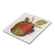 Un dibujo a lápiz de color de una manzana roja y verde adorna esta baldosa decorativa.