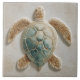 Azulejo Aqua and Sand Coastal Sea Turtle Art