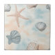 A serene coastal pattern ceramic tile featuring shimmering starfish, sculpted seashells, and soft aqua watercolor waves. The design blends breezy beach charm with a touch of seaside elegance. Ideal for ocean lovers, coastal décor fans, and anyone who enjoys light, refreshing summer aesthetics. A thoughtful gift for beach birthdays, coastal weddings, retreats, and sea-inspired celebrations.