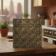 This highly detailed ceramic tile showcases a complex, repeating geometric pattern featuring an intricate arabesque of six-pointed starbursts and interlocking hexagons. The faux-dimensional, chiseled pattern is finished in a luxurious, textured oxidized bronze, evoking the rich patina of aged architectural metalwork. This sophisticated tile is perfect for creating an opulent, high-end statement and is ideally suited for Art Deco, Neoclassical, upscale industrial, or contemporary luxury décor applications like bar fronts, accent walls, and elegant foyers. Search ID1227 to see other metallic geometric designs in this series. Note: design adapted from generative content.