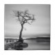 Esta foto blanco y negro ofrece un tiro largo de la exposición de un árbol solo privado de las hojas en invierno, bahía de Millarochy, Loch Lomond.