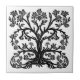 Azulejo Árbol floral de la vida en negro sobre blanco