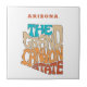 Diseño tipográfico divertido y colorido, con un toque retro, presenta el apodo del estado de Arizona: El estado del Gran Cañón expuesto en una silueta de forma estatal