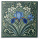 Azulejo Art Deco Blue Iris Bloom Floral Motifs Botanical