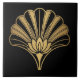 Azulejo Art Deco Gold Lotus Fan Black Ceramic Tile