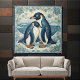 Azulejo Art Deco Penguin Ice Bird Couple Snow Ocean Floral