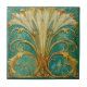 Azulejo Art Deco Retro Gold Turquoise Trumpet Flower