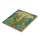 Beautiful image in the Art Deco, Art Nouveau style ceramic tile, trumpet flowers in pretty shades of yellow, gold and turquoise. Gold leaves and stems curl around the flowers against a turquoise background.
