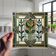 Step back in time with this exquisite ceramic tile, inspired by the bold geometric aesthetics of the Art Deco movement. A central stylized rose, rendered in a striking emerald green and accented with warm bronze hues, is framed by a symphony of angular lines and symmetrical patterns. The sophisticated color palette, featuring deep blues, rich greens, and touches of maroon, is beautifully complemented by shimmering gold detailing, evoking the glamour of the 1920s. This tile is an ideal choice for creating a focal point in your home, whether it's for a stylish kitchen, a chic bathroom, or an eye-catching feature wall, bringing a sense of timeless glamour and artistic flair to your decor.
