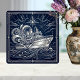 Azulejo Art Deco Silver boat Ocean Waves Starry Night