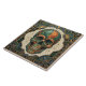 Azulejo Art Deco Skull Emerald Green Orange Gold Ceramic T