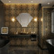 Add a touch of vintage glamour to your space with this stunning Art Deco ceramic tile. Featuring a striking gold sunburst pattern set against a deep black background, this design evokes the elegance and sophistication of the Roaring Twenties. The intricate geometric lines and radiating rays create a mesmerizing visual effect, perfect for adding a statement piece to any room. This tile is ideal for accent walls, backsplashes, or decorative accents, bringing timeless style and luxury to your home decor. Its bold contrast and metallic sheen make it a true conversation starter.
