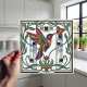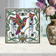 This exquisite ceramic tile features a vibrant hummingbird in a striking Art Nouveau style, rendered in a captivating geometric mosaic. The intricate design showcases the bird in mid-flight, its colorful wings spread as it reaches for a delicate flower. Surrounding the scene is a lush floral motif with swirling green leaves and elegant linework, creating a harmonious blend of nature and artistic expression. Perfect for adding a touch of vintage elegance and a splash of color to any space, this tile is a true work of art for your home.