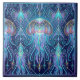 Explore the enchanting depths of an otherworldly ocean with this exquisite ceramic tile, adorned with a captivating Art Nouveau jellyfish motif. The design features a cosmic jellyfish gracefully floating amidst a backdrop of swirling patterns and geometric accents in rich shades of purple, blue, and turquoise. Delicate gold lines accentuate the intricate details, adding a touch of luxury and sophistication. This captivating tile is ideal for creating a unique statement piece, bringing the mystique of the deep sea and the elegance of Art Nouveau into your decor.