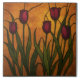 Bring timeless artistry and color into your home with this stained glass-style tulip art tile. Featuring elegant burgundy tulips and graceful green leaves set against a glowing amber background, this design captures the rich, handcrafted beauty of Art Nouveau and stained glass style decor. The warm color palette and intricate detailing make this tile a perfect choice for decorative displays, backsplashes, or as a unique art accent. Whether you use it as part of a wall installation, trivet, or gift, this piece radiates classic charm and sophistication.