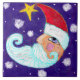 Mi colorida pintura abstracta de un Santa Claus de media luna hace que esta baldosa de cerámica sea un arte navideño decorativo funky