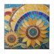 Azulejo Arty Yellow Sunflower Abstract Faux Mosaic Blue